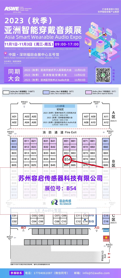 容启传感参加2023(秋季)亚洲智能穿戴音频展,展位号B54
